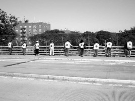 The printed format (18 X24 o r36 in) combines all efforts into a single, basic, portable, easily accessible format of printed-paper. It was decided by the members of sindikat to choose this format to explore its boundaries and also due to convenience and availability of materials. The workshop’s process extends into other areas — performance, public space installations/interactive projects, video and sound. In those instances different formats might be used, but a printed format still remains the main element. However, the printed format always accompanies other projects, as format of documentation. – sindikat is a workshop that unifies people contributing work on the given topic. – sindikat has unity as its goal, which means that the participants do not sign their individual peaces, but, rather, everybody takes credit for the collective end-result. This way, vy da vy is a single unit that undertakes projects. sindikat has as its goal the development of new communication skills that will allow for the dialog between diverse ethnic and cultural spheres.