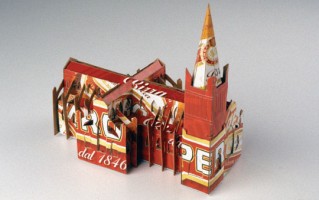 Chris Gilmour, Church, series of 6, 2006 Cardboard packaging and glue, 5"d x 4.5"h x 2"w