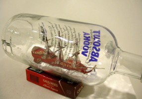 Chris Gilmour, Booze bottle, 2006 Cardboard packaging, glass and glue