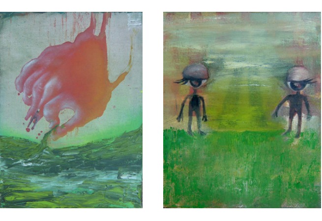| Images from top: Marl�ne Mocquet The Bird Fingered Hand (La main aux doigts d�oiseaux) 2007 33 x 24 cm / 13 x 9.5 in mixed media on canvas