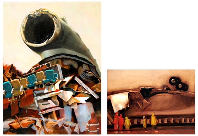 Top left: Crash oil on panel