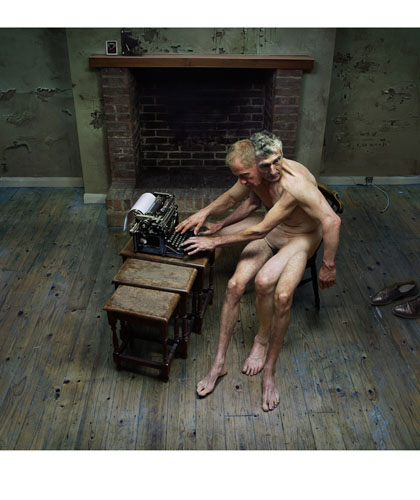 | | These stereotypes, as I see them, have traditionally emphasised bodily control and stability through physical strength, often embodied in a physique with a firm and impenetrable exterior, often engaged in a display of controlled action. These stereotypes can be seen everywhere in representations of masculinity from Greek sculpture through to images of the modern day body-builder. The figures in my pictures are represented in such a way as to undermine the illusion of control over the body. The bodies are not represented as mastered, organized, or as centres of controlled action. Instead, male figures are conspicuously fleshy, flawed, subject to age and decay, vulnerable and uncertain as to their boundaries and stability.
