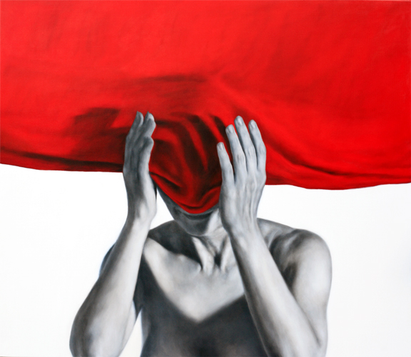 Recently within contemporary art there has been resurgence in using the portrait genre as a tool to explore concepts that reach beyond pure appearance and likeness. As an artist that uses portraiture, I am drawn to examine what it is that makes certain figurative artists compelling. ARINA’s faces stand out from the crowd with a graphic signature style that is memorable. The compositions have a bold directness with the monochromes and reds creating a visual language that communicates across cultures. Her use of light, composition and pose has a sense of a 17 Century Dutch artists like Vermeer but the use of scale, tone and reference to realism bring it firmly into the 21 Century. The qualities of her art have hints of her Russian background within the context of Western influences.