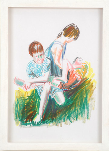 Even if Biratoni has recently been showing a more spatial approach to the work, his peculiar modus operandi confirms his will to leave the line between his young boys and girls and adults blurred and indefinite. We are asked to fill in the white spaces and to sharpen the images through our own sensation/impression. Besides the small, painted settings, Biratoni is also producing a limited series of portraits of charming young characters that are related to the whole body of his work since they almost invite the spectator in to take a closer look at the ambiguous sceneries. They posses an intense, ironic and magnetic sight even though they are traced�as well as the other characters�in a blurred, almost offhanded way. We do not make a mistake in considering Biratoni�s painting an instinctual response to a natural stimulus that is then pondered, questioned and put together on the canvas.