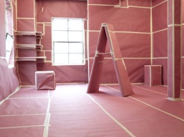 Gentile's earlier photographs are images of sculptures, or sculptural scenarios, that he created in his studio. Disembodied from any specific context, scale and verisimilitude are questioned. Building upon this practice, his most recent photographs include the addition of basic studio objects, and partial glimpses of the studio itself.