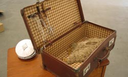 �Suitcase Specimen & Compact� brown paper, thistle hair 2006