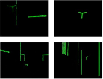 Long photographic exposures were made in the exhibition space with the lights off revealing the green glow-in-the-dark marks used to navigate the space during air raids.