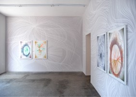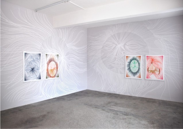 Der Titel der Ausstellung "Sonnenlicht" benennt die vitale Energie die in den Arbeiten steckt und bezieht sich auf die die Waende bedeckende Kreidezeichnung, die mit ihren Strahlen die komplette Galerie ausfuellt. Die Wandzeichnung breitet sich, von den Papierarbeiten ausgehend, wie ein Echo ueber den Raum aus und verwandelt die Galerie in einen obskuren Kultraum. Christliche Assoziationen vermischen sich mit aztekischem Sonnenkult und Kinderbuchillustrationen. Die Quelle der Arbeiten ist schwer zu entschluesseln. Sie reicht von Christusdarstellungen bis zu Hippie Klischees, von baertigen Holzfaellertypen zu Dschingis Khan und Tom Selleck. Beruehmte Charaktere wechseln sich ab mit Figuren die zur privaten oder imaginaeren Sphaere des Kuenstlers gehoeren. In kraftvollen Zeichnungen werden sie unhierarchisch zitiert, vermischt, und mit Liebe zum Detail in einer brillianten chromatischen Synthese veraendert | Jan Albers *1971, lebt und arbeitet in Duesseldorf. Er stellte national als auch international in Galerien und Institutionen aus u.a. Sara Meltzer Gallery, New York; Konrad Fischer Galerie, Duesseldorf; CAM, Chelsea Art Museum, New York; Museum Het Valkhof, Nijmegen; Museum Baden, Solingen; Galerie Tanit, Muenchen; Jablonka Galerie, Koeln; Palazzo delle Papesse Centro Arte Contemporanea, Siena uvm. In 2006 wurde Albers mit einem Pollock Krasner Foundation Award ausgezeichnet. Images : JAN ALBERS, SONNENLICHT May 12 - June 30, 2007 Installation view at VAN HORN, Dusseldorf | |||