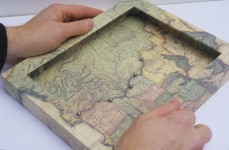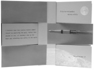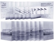 | one’s farm to evaluate the progress of their crops. The playful Big River takes the form of a child’s pocket game. The viewer maneuvers the box to position each of the balls into a divot corresponding to a city mentioned in the Johnny Cash song, Big River, where the lovesick narrator chases his woman down the Mississippi River, missing her at every port. Another series of work explores our cultural experience of the development of technology through first person accounts and artifacts. It is a living thing documents interviews with software engineers regarding what they find beautiful or compelling about well-written software and the act of programming. Quotes are accurately printed and “punched” on giant replicas of computer cards. Two books encompass the history of manned flight. Secrets of Flight combines photographs and text from the Wright Brothers’ own documentation of the first manned, powered flight. Destination Moon contrasts John F. Kennedy's “Man on the Moon by the end of the decade” speech with a pop song about a couple’s romantic trip to the moon. | |||||||||
