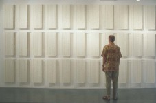 | chronicle both the milestones and the daily routine in the 90-year history of an immigrant farming family. Each piece requires a heightened level of engagement – leafing through a book whose pages are interleaved like grains on a stalk of wheat; winding forward and back through a movie-like, time traveling scroll; walking through rows of an installation that becomes a walk around the boundaries of |