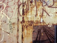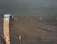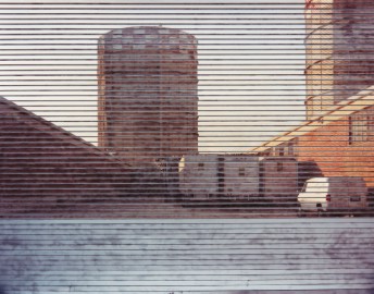 | The urban landscapes depicted in these large-scale photographs are interrupted or obstructed by a foreground object or layer. The barrier acts like a veil that drapes, surrounds, separates, distorts and conceals in a manner that manages to both perplex and seduce. But the barrier is never meant to be completely opaque or impenetrable. Through the holes, gaps, tears, and openings in the foreground, we are invited to peak and look beyond this layer or coating and acknowledge the space that lies on the other side. This veil therefore acquires an ambiguous nature: as it simultaneously hides and reveals, it asks us to consider the very notion of seeing as fragmentary and contingent, and also invites us to imagine and fill in the entire landscape as we attempt to perceive our surroundings. - As I began the In Camera series, I became increasingly concerned with scale. I understood that the objects and scenes I was photographing offered complex patterns and details that needed to be retained and reproduced as accurately as possible. |