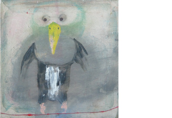 Mocquet�s is a world of animated objects and anthropomorphic animals. Birds, volcanoes and beasts bleed into her raw surfaces. She simultaneously obeys and defies her materials - sometimes creating the illusion of a watercolor, other times letting the viscosity of paint live on its own. Bold and arbitrary gestures operate as starting points to generate imagery and dictate composition � these surrealist devices are utilized to develop her dizzying brand of anti-narrative.