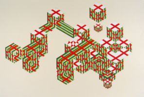 My work seeks to question two fundamental poles of painting and drawing practice, identity and the way that it manifests itself within formal investigation. I see identity as a dialectical relationship between the personal and the cultural. In this sense, a sign such as the Jewish star holds both private and public meaning. Its application inside of the grid,an implicit architecture of the rectangle - the body and space of this investigation, becomes a mark, a circumcision that notes both an absence and presence of meaning.
