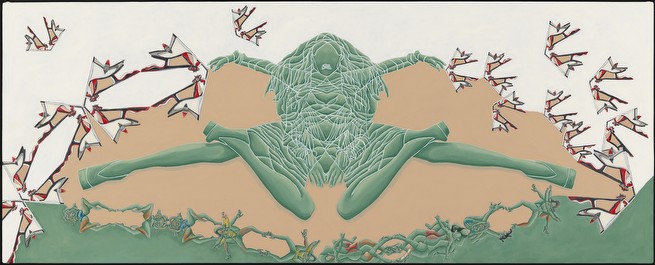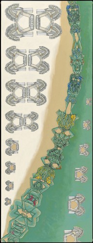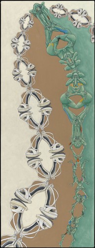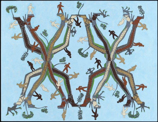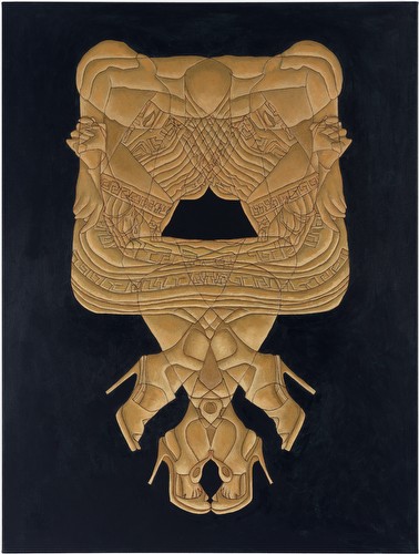 I work in series, which variously reflect my interest in social dynamics. Most of the imagery submitted addresses the impact of commercial media representations of women. My appropriation and replication of their contours reflects the shaping of personal narratives/identities forged from ubiquitous, media manufactured archetypes. The cult of the individual has become one of emulation, leading, in various degrees, to a post-feminist re-embrace of our own objectification. The “Appearances” paintings simulate the worldly beauty/ power of historic Eastern deity icons such as Buddhist images of Bodhisattvas-charged with guiding souls to spiritual perfection- and in these works links it to the visual supremacy of media ‘goddesses’. My tracings and manipulated fusions of these perfected bodies and my resultant distortions are intended to resonate with the troubling consequences of identities built on commercial desire. “Temple Construction” is a category of works that includes groups of paintings, “Turning to Stone” and “Freeze”. The imagery and titles reference the hierarchy of power and devotion that the beauty industry inspires. The dimensions of the works, Turning to Stone, resonate with those required for a career in modeling- and depicts fashion figures totemically, as deity icons in a temple frieze, ‘biblically’ turning to stone in contemplation of ‘high end’, ‘must have.’ accessories. In the “Traffic” series, I use the neutrality of sign figuration to fashion a codex, to map less visible dynamics of the social landscape- here the intersection of beauty and desire, the media, and human trafficking.