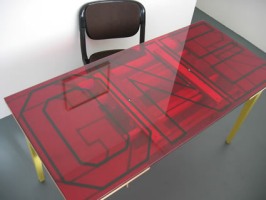 Tom Ellis invites us to take a walk up Klever Strasse where the architect appears to be a lazy drunken clown, with abandoned paintings, slacker expletives and a Berlin beer table. Even the Gallery has had its name inverted to become the artist. But then we are given glimpses of sharp wit and skilled craftsmanship when we realise that the artist has also designed the office furniture, a resplendent red glass table that spells out the word GONER, a prediction perhaps for the gallerist or curator that sits behind it?