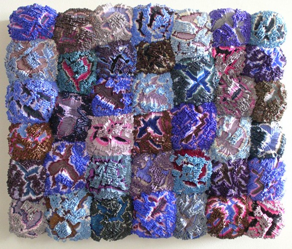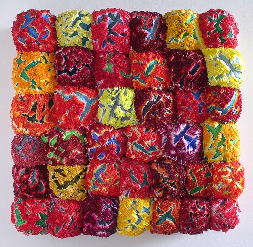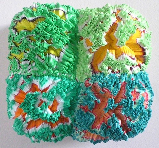 Bursting out from their panel surface, Vadim Katznelson’s work is colorfully dimensional. His sculptural paintings have been shown at Margaret Thatcher Projects, New York; Northwestern College, St. Paul; Roy Boyd Gallery, Chicago as well as Rosenberg and Kaufman, New York. Katznelson’s work has also been reviewed by the ArtNews, The New York Times, Abstract Art Online and others. Katznelson’s pieces are highly collected and have been placed in the holdings of the Milwaukee Art Museum and The ArtCollTrust as well as numerous private collections. Katznelson has received awards from the Robert MacNamara Foundation and the Pollock-Krasner Foundation. He has also received institutional grants from the Institute of Museum Services and the National Endowment for the Arts. Katznelson received his B.F.A. from The School of the Art Institute, where he specialized in drawing and painting.