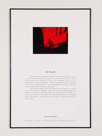 Jack Goldstein, Portfolio of Performance, 1976-1985/2001 9 Silkscreened text and color photographs mounted on paper 36 x 24 in | |||
