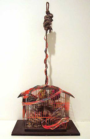 Tetsumi Kudo Portrait D'Artiste dans la Crise, 1977 Mixed media and birdcage, 33 x 15.8 x 9 in | |||