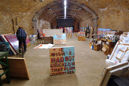 | �After my degree show in 1993, three people came up to me and uttered the words �let�s do something�� � Bob and Roberta Smith, 2009 One of these invitations led to the long and productive relationship that Bob and Roberta enjoy with Beaconsfield, London. In the intervening sixteen years, Bob and Roberta have contributed to various Beaconsfield projects, at home and abroad, and are currently 'in residence' for one whole year. The spacious premises in Vauxhall have been utilised as a prolific site of production and are now about to open as Bob and Roberta Smith's Factory Outlet. Save the launch date! BOB AND ROBERTA SMITH'S FACTORY OUTLET Friday 6 November, from 7pm with performances by The Ken Ardley Playboys, The Apathy Band, Leigh Clarke, Boycott Coca-Cola Experience, The Fucks and Resonance Radio Orchestra Exhibition: 7 November 2009 � 21 February 2010 Check our website for pre-publication price of exclusive, limited edition etching. This is the first in the Beaconsfield series Phase, which turns the spotlight on mid-career artists with whom the organisation has had a significant past relationship. Beaconsfield is a Regularly Funded Organisation of the Arts Council of England. Winter / Spring 2010 at Beaconsfield The Ragged Canteen is open Tuesday-Sunday 11am-5pm serving a range of ethically sourced, fresh vegetarian food, Monmouth coffee, teas and cakes. Thursday 18 February at 2pm Art & Compromise V: Jon Thompson Upper Gallery 1 Jon Thompson is an artist, writer, curator and academic known for his involvement in the development of the so-called YBA generation. Instrumental in changing the way the art school system worked in the UK, he opened up the departments at Goldsmiths College, London, enabling students to move freely between and/or beyond the separate specialisms of painting, sculpture, photography and print-making. This distinguished Goldsmiths from previously dominant art schools like St Martins. In 1988 he was involved in a mentoring capacity with the now legendary Freeze warehouse exhibition curated by two sociology students and Damien Hirst whom Thompson had accepted on to the course and tutored during his time there. This event is free but booking is essential. To reserve tickets please contact [email protected] / 0207 582 6465 Art & Compromise is a series of talks launched in 2008. Delivered in partnership with City & Guilds of London Art School the series addresses the various forms and occasions when compromise might enter into art-practice. Bob and Roberta Smith�s Factory Outlet ...is open across all galleries at Beaconsfield until 21 February. As part of his year-long residency at Beaconsfield this exhibition offers an opportunity to reflect on the diverse output of one of Britain�s more maverick and prolific artists. Sunday 7 February at 2pm See Bob and Roberta live in rehearsal with the Ken Ardley Playboys and Noctum Rectum. Listen to Bob and Roberta reading the story of their relationship with Beaconsfield in Let�s do something or �we must do something� http://www.beaconsfield.ltd.uk/projects/factoryoutlet/factoryoutlet-launch.html Grab a bargain at the Factory Outlet! Bob and Roberta Smith�s limited edition etching produced exclusively for Beaconsfield is available at the reduced pre-publication price of �175 until the end of the exhibition period. http://www.beaconsfield.ltd.uk/imprint/index.html This is the first in the Beaconsfield series Phase which turns the spotlight on mid-career artists with whom the organisation has a significant relationship. 23-28 February The Badger Series Paul Tarrag� Canteen Gallery 2: FlatScreen Irreverent video works playing within the format of an imagined children�s television puppet show. The Badger Series will be broadcast intermittently in the caf� space throughout Spring/Summer 2010. 1 March-18 July TestBed 1 Michael Curran in collaboration with Lucy Gunning Anthony Gross Lilli Hartmann Pil and Galia Kollectiv Dafna Talmor Joseph Walsh Across all galleries. In a time when millions of viewers have access to the Internet, video/cameras and home-editing suites, a circulated YouTube clip becomes a conversational spectacle overnight. With the proliferation and advancement of technology, the creative process itself has become more democratic and has enabled people en masse to become not only viewers but �creators�. TestBed 1 responds to popular practice by inviting artists working with the moving image to produce and present artworks using the prevalent modes of production readily available - in the context of a professional art space. Participating artists will work in the Beaconsfield galleries from March to August in a series of residencies. During this time the public is invited to witness our galleries turn laboratories, turn performance and production sites. Check website for weekly schedule and FlatScreen programme. New commissions produced for TestBed 1 will be screened on 18 and 19 September during Open House weekend http://www.londonopenhouse.org TestBed 1 is produced as part of Beaconsfield�s curatorial mentoring scheme for emerging artist-curators. Mentees: Dafna Talmor and Joseph Walsh. Beaconsfield offers a space for artists and audiences to experience high quality (beacon), challenging, new art works in a wide range (field) of contemporary visual art media through commissions, group exhibitions, performances, publications and events. | ||||