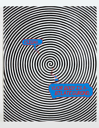| Julian Hoeber All That is Solid Melts into Air September 6 - October 18, 2008 Opening Reception: September 6, 2008 6 - 8pm This new body of work is an old tattered body. Totally classical forms. Forms that keep threatening to die. And even if they survive, they are sullied with the look of death. Hence bronze figurative sculptures riddled with bullet holes. Hence optical art mashed together with trompe l'oeil painting with psychology pushing through the surface like the ribcage of a decaying corpse. I don't think of myself as a whole and unique identity. I do however consider myself to be a very specific location through which a unique set of ideas, experiences, feelings and influences pass. The best model of a person is a tube. Stuff goes in and stuff comes out. A lot of stuff has gone into me over the years. A mashed together version of all of it is what I try to squeeze out. So the stuff that went into my tube: Bridget Riley, Camille Claudel, Judy Chicago, Valie Export, Barbara Kruger, Roy Lichtenstein, Thomas Eakins, Arthur Fellig, Christopher Wool, Sterling Ruby, DJ K-Swift, Santogold, Melanie Klein, Cy Twombly, Hermann Nitsche, Chris Vasell, Lucio Fontana, Paul Cezanne, Mark Quinn, Nate Lowman, Barnett Newman, Elaine and Saul Bass, Giulio Questi, Herschell Gordon-Lewis, Jean-Luc Godard, Paul McCarthy, Jim Shaw, Niki de Saint Phalle, Jesus Rafael Soto, Kori Newkirk, Jasper Johns, Kenneth Noland, Cady Noland, Tony Tasset, John Stagliano, Diplo, F. X. Messerschmidt, Tony Cragg, Alfred Hitchcock, David Simon and Ed Burns, Lucian Freud, Sigmund Freud, John Cassavetes, Robert Bresson, Vito Acconci, Harlod Brodkey, Mike John, Sasha Grey, M.I.A, The Minutemen, Marina Abramovic and Bruce Naumann. I could go on. And on. But the thing is the forms I love most are those old ones. And the first thing that ever fed my tube was my mother, she the child of card-carrying members of the communist party, and my father a bureaucrat who was also an actor in the theatre. He practiced two arts one of fighting stasis and one that is dead. I am in this sense a relic--one that believes in old forms and old ideas, or at least was inundated with them. And those forms and ideas are dying. I'm not gonna fight it too hard. But I will be true to the tube that I am. I was once told by a raw food nutritionist that if you eat live things you will be full of life. If you eat dead things...well you can figure it out. If there's anything that I�ve properly digested, it's post modernism, that silliness. The pastiche of references that once was the center of art making had as its subject matter the very act of pastiche. David Salle's work was empty except for the fact of the conglomeration of things that he smashed together for no good reason. For those whose stock and trade was the readymade, from Duchamp to Koons, the subject matter was the absurd gesture of appropriating an industrial object. But at a certain point sculptors of my generation realized that Koons' basketballs were no more remarkable for the fact that they were appropriated than Judd's plexiglass and stainless steel angle iron. The product of an anonymous manufacturer is whatever. Basketballs and urinals are just more material. At a certain point I think art works started to take on this quality of anonymous product. I'm not referencing Bridget Riley in my work any more than Judd was referencing the industrial designer who developed the process by which aluminum rod is extruded. I've eaten up all that dead stuff. Cooked it. Chewed it up and made some shit out of it. I've chewed up history, digested it and pushed out something which although stinking a little of death, has a certain whole synthesized, digested quality. And like the any other shit, you could find more different strands of DNA in it than in its producer. - Julian Hoeber Blum & Poe is pleased to announce our third solo exhibition of Los Angeles based artist Julian Hoeber. The exhibition will include two new bodies of work, the first a series of fifteen works on paper that continue Hoeber�s investigation of psychology and nausea through perceptual tricks. Hoeber will also present a series of ten unique bronze-cast heads, a darkly humorous and absurd evolution of classical sculptural busts that have been shot, beaten and bitten. Prior to earning his MFA from Art Center College of Design, Julian Hoeber attended the Karel deGrote Hogeschool in Belgium and received degrees from the School of the Museum of Fine Arts Boston and Tufts University. Hoeber has exhibited internationally, a recent selection of venues include Parc St. Leger Art Contemporain, Pougues Les Eaux, France; LACE, Los Angeles, CA; Deste Foundation Centre For Contemporary Art, Athens Greece; Today Art Museum, Beijing, China; and Emily Tsingou Gallery, London. Biography JULIAN HOEBER Born: Philadelphia, Pennsylvania, 1974 Education: Art Center College of Design, Pasadena, CA, M.F.A. School of the Museum of Fine Arts, Boston, MA, B.F.A. Tufts University, Medford, MA, B.A. in Art History Karel deGrote Hogeschool, Antwerp, Belgium Lives and works in Los Angeles, CA One-Person Exhibitions 2007 The Armory Show, New York, NY Galleria Francesca Kaufmann, Milan, Italy 2005 Talkers are No Good Doers, Blum & Poe, Los Angeles, CA 2003 Essor Gallery, London, UK 2002 Killing Friends, Blum & Poe, Santa Monica, CA Group Exhibitions 2008 Parc St. Leger Art Contemporain, Pougues Les Eaux, France Against the Grain, LACE, Los Angeles, CA (curated by Christopher Russell) 2007 Panic Room - Works from The Dakis Joannou Collection, Deste Foundation Centre For Contemporary Art, Athens Greece Today Art Museum, Beijing, China Trudi: No Jerks, Rental Gallery, NY (curated by Catherine Taft and Matthew Chambers) 2006 Dark Places, Santa Monica Museum of Art, Santa Monica, CA A Selected State, Emily Tsingou Gallery, London JSA (Jim Shaw�s Army), Rental Gallery, Los Angeles, CA many, many guys and girls, all real beauties, Circus of Books Gallery, Santa M