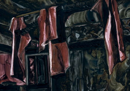 | T H R E S H O L D The Blyth Gallery is proud to present an exhibition of paintings, sculpture and drawing by current Royal College of Art students Adam Bainbridge and Anna M. R. Freeman. Notions of home, alienation and belonging are addressed by both artists but are executed through radically different stylistic approaches. THRESHOLD will challenge these concerns by constructing a direct discourse between the two artists work. Freeman investigates themes of longing, infinity, grandeur and dilapidation through painting and installation works combining images of decorative and derelict spaces. Through a fluid and intuitive use of paint, environments are conflated and established. The construction of space occurs both inside the framing of a painting�s surface and in the space of the installed paintings. A different logic is at play in Bainbridge�s work in accordance with an almost opposite way of working. Hyper-realistic drawings give otherworldly places and beings a sense of form and mass, rooting them in a reality in which they do not belong. Like Freeman�s paintings, they seem to transcend reality yet simultaneously remain rooted in it. Both artists engage with ideas relating to �Englishness�. Freeman�s work conjures images of decadent Victorian mansions � images of splendor and excess � that question the comfort and security that this abundance appears to offer. Bainbridge�s England is a very different one � it is a working-middle class England of tidy front lawns, floral fabrics and twee decorative ornaments. Central to both artists work are concerns relating to desire and a subsequent lack. Freeman�s paintings seem to express a desire to be somewhere else. Where this place is, is not made clear � the object of desire remains illusive � yet what is constant throughout is the sense of lack at the core of desire. This is seen similarly in Bainbridge�s work, behind the floating figurines and the melancholic ornaments is the pervading sense that something is missing � that despite whatever is present, whatever is revealing itself and making itself known, there is something further that is not and is destined to forever remain there. Adam Bainbridge was born in Boston, Lincolnshire in 1982 and Anna M. R. Freeman was born in London in 1982. Both artists are due to graduate this summer from the MA Painting course at the Royal College of Art. | ||||