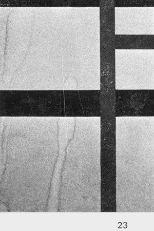 | Blow Up Modernists is the title of Gordon's recent and ongoing body of work of silkscreened paintings. Original catalogue images of modernist paintings by male artists such as Malevich, Mondrian, van Doesburg, Stella and Pollock are zoomed in on and blown up to a scale where the dot matrix of the printed page comes into focus, then translated into a stark black and white screenprints on canvas. Gordon is interested in the means by which time becomes evident in a printed surface: she searches for images of modernist paintings with cracks and signs of ageing in catalogues from the 1920's until the present, looking for evidence of physical deterioration in art history. Some works are photographed repeatedly in different catalogues, showing how the original changes over time and also in it's repeated representation. Gordon's silkscreened croppings and reconfigurations focus on these inconsistencies: a solid surface cracking, a square becoming a series of points, a straight line becoming ragged. Parallel openings at Kadel Willborn, Linn Lühn, Van Horn, Sies + Höke and KAI 10. | ||||