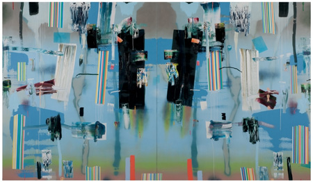 Tomory Dodge, Texoma (2011) Oil on canvas Two panels, 84 x 72 inches each | |||