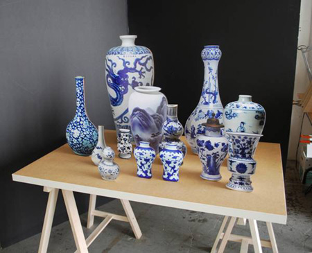 | Solo Exhibition Stephanie Syjuco: RAIDERS Media Room Kate Gilmore: three video works June 4–July 16, 2011 Reception Saturday, June 4, 4–6pm Catharine Clark Gallery announces RAIDERS, a solo exhibition of installations by Stephanie Syjuco. Three videos by Kate Gilmore are presented in the Media Room. The exhibition dates are June 4 through July 16, 2011. Syjuco will be present at the opening reception on Saturday, June 4, from 4 to 6pm. Stephanie Syjuco has raided the collection of a prominent Asian arts and antiquities museum…figuratively, that is. For RAIDERS, her first solo exhibition at Catharine Clark Gallery, Syjuco has amassed a re-assembled collection of antique vessels by downloading publicly available images from their online database and printing them at the actual sizes listed on the site. Adhered to laser-cut wooden backings and gathered in groups, the prop-like objects at first glance appear to be a collection of valued cultural objects. Upon closer inspection, the vessels, now degraded and flattened, have been rendered ineffective, removed from their original usage, and then again from their institutional context. By using open online sources, Syjuco investigates how we participate in the construction of culture and how the accessibility of the internet can facilitate its redistribution. On a more personal level, Syjuco has chosen Asian vessels as a way of exploring her own heritage and how it may or may not be found in these representations. “For me there is a murkiness of where my identifications lie, since I am supposed to have a connection to the original objects' histories.” Already rife with cultural and historic meaning, the vessels, jars, bowls, and vases—curvaceous items meant to contain things—also represent femininity and maternity, signifying gender roles, as well as ethnic ones. The works in RAIDERS delve into issues of acquisition, appropriation, and the accumulation of cultural capital through international “booty.” The title of the exhibition—a play both on the idea of piracy and a nod to the antiques-rescuing archeologist Indiana Jones—raises a question: who is the raider: the artist or the institution? A hybrid of digital and analogue bootlegging, Syjuco’s “thievery” has played an important role in her process. In October 2009 she presented a parasitic art-counterfeiting event, COPYSTAND: An Autonomous Manufacturing Zone, for Frieze Projects, London, as well as contributed proxy sculptures for PS1/MoMA’s joint exhibition “1969.” For her project Everything Must Go (Grey Market), she created a double-layer of stolen goods by re-creating electronics using images of potentially stolen items from online vendor sites such as Ebay and craigslist.Other recent works have used the tactics of bootlegging, re-appropriation, and fictional fabrications to address issues of cultural biography, labor, and economic globalization. Working primarily in sculpture and installation, her projects leverage open-source systems, shareware logic, and flows of capital, creating frictions between high ideals and everyday materials. Born in the Philippines, Stephanie Syjuco received her MFA from Stanford University and BFA from the San Francisco Art Institute. Her work has been shown nationally and internationally, and included in exhibitions at PS1, the Whitney Museum of American Art, The New Museum, SFMOMA, Yerba Buena Center for the Arts, The Contemporary Museum (Honolulu), The San Diego Museum of Contemporary Art, and the California Biennial at the Orange County Museum of Art, among others. She has led workshops for her ongoing global collaborative Counterfeit Crochet Project at art spaces in Istanbul, Beijing, and Manila, and in December 2008 her work was the subject of a solo exhibition at the Contemporary Arts Museum Houston. Her works have been praised in Artforum,Art in America,Flash Art,Art Practical,The San Francisco Chronicle,The New York Times,The Financial Times,The Wallstreet Journal,Craft Magazine, and on KQED’s Spark, among many others. For the last six months, Syjuco’s project Shawoshop was embedded within the San Francisco Museum of Modern Art’s fifth floor galleries—a project that included the works of 200 Bay Area artists and garnered significant critical acclaim, raising $100,000 for the artists who participated in the work. Presented in the Media Room is a selection of three videos by Kate Gilmore. In her videos Gilmore’s protagonists act out nearly impossible, always awkward or uncomfortable, and somewhat absurd physical challenges. Gilmore’s characters exhibit a persistent desire to succeed in the face of challenging obstacles and an ability to cope with self-imposed high expectations. These concerns are human ones, but the way they are portrayed owes something to self-representational feminist work of the 1960s and 70s, such as that of Hannah Wilke, Carolee Schneemann, and Lynn Hershman, and to the performance art of Joan Jonas and Marina Abramovic.In By Any Means Gilmore, dressed in a dainty pink dress and covered in mud, struggles to climb her way barefoot out of a deep ditch surrounded by protruding, sharp pieces of wood. In Higher Horse Gilmore, wearing high heels, stands atop a mound of white plaster blocks as two men strike the blocks with sledgehammers and cause the mound to crumble down around her. In That Human Touch the shaky spinning camera reveals in chaotic glimpses Gilmore aggressively kicking and tearing her way out of an enclosed structure.Gilmore's video works employ anxiety, humor, and hyperbole to reveal role-playing and a kind of Sisyphean absurdity in her actor’s pursuits. Her women are desirous, even desperate for love, attention, and success—desires which have been historically the concerns of women, but are also deeply connected with the conditions of making art. Kate Gilmore (b. 1975 Washington, DC) received a BFA from Bates College and an MFA from the School of Visual Arts in 2002. S