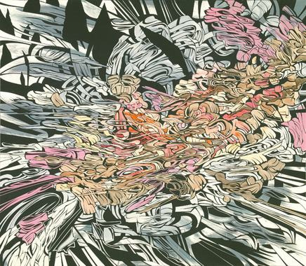 | Raum1 Perry Roberts, Emilio Perez Bisher war Perry Roberts (geb. 1954 In Newcastle upon Tyne, GB) bekannt f�r seine gro�formatigen Wandmalereien, die den Zusammenhang von Malerei und Architektur in reduziert abstrakter Formensprache thematisierten. 2006 war in der Ikon Gallery, Birmingham, seine mehrteilige raumf�llende Videoprojektion �Transitions� zu sehen, in der Architektur � �berwiegend aus den Sechziger Jahren � und wechselndes Tageslicht zu einer abstrakten filmischen Komposition verschmolzen. Im Fr�hjahr 2007 zeigten wir aktuelle Bilder in der FILIALE Berlin, deren starke Farbigkeit sich schon in den monumentalen Wandmalereien 2006 im MARTA, Herford ank�ndigte. Seine neuen gro�formatigen Leinw�nde waren im Fr�hjahr 2007 erstmals in der Galerie Koraalberg, Antwerpen zu sehen. In den Neunzigern hatte Perry Roberts bereits mehrere Ausstellungen in unserer Galerie und eine umfangreiche Einzelausstellung im Abteiberg-Museum, M�nchengladbach. Emilio Perez (geboren 1972 in New York) bewegt sich in seinen abstrakten Malereien zwischen den drogeninspirierten Arbeiten eines Henri Micheaux, Freestyle � Graffiti und der Bildsprache des Manga. Er hat eine einzigartige Arbeitsweise perfektioniert. Er tr�gt Malschicht auf Malschicht auf und entfernt Bereiche, die er mit freier Hand mittels Skalpell herausschneidet wieder, um darunterliegende Farben freizulegen. Die kleinteiligen Formen verdichten sich im Bild zu spiraligen Farbwirbeln und schaffen einen Kosmos subjektiver Assoziationen auf Seiten des Betrachters. Seine erste Einzelausstellung in der Lelong Gallery, New York, die gerade zu Ende gegangen ist, fand bei Besuchern und Sammlern au�ergew�hnliche Beachtung. Raum2 Mark Kent Rough Sleeping Patterns Mark Kent Rough Sleeping Patterns und andere Arbeiten Galerie Conrads zeigt neben neuen Bildern die Installation �Rough Sleeping Patterns�, die Mark Kent f�r die von Ami Barak kuratierte Ausstellung House Trip auf dem diesj�hrigen Art Forum Berlin angefertigt hat. Wir freuen uns, dass zur Ausstellung in D�sseldorf das gleichnamige Buch Rough Sleeping Patterns, die erste gr��ere Publikation des K�nstlers, erscheint. Die Installation ist aus den Eindr�cken einer langen Fahrradreise des K�nstlers durch Norwegen entstanden. W�hrend dieser Reise �bernachtete Mark Kent �berwiegend im Freien: Rough Sleeping. Kent sagt dazu selber: � The input is my own life. During my travelling I constantly keep track of what the coordinates of my location are. When I�m back in my studio, I begin with a figurative image, which I manipulate on the computer. I use the numbers of the coordinates to change the sine waves of the image. It�s an asymmetrical system and my patterns have flaws. They have the accidental in them and they don�t quite match up.� Gro�e Muster in grauen, schwarzen, gr�nen und wei�en Farben wurden auf Tapete und Stoff gedruckt. Auf der Wand h�ngen Bilder mit �hnlichen Mustern, die jedoch farblich leicht differieren. Der Raum verliert seine feste Form und wir verlieren uns in den nie gleichen Mustern von Wand, Vorhang und Bild. Unser Auge folgt Kent�s fragmentierter Welt aus abstrakten Linien, Farben und Formen und versucht Halt zu finden, aber das Gehirn scheitert an der Komplexit�t der visuellen Eindr�cke. �berlassen wir uns den visuellen Strukturen, gleiten wir in einen meditativen Zustand, fast als w�ren wir hypnotisiert durch den von uns betretenen Raum. Mark Kent, geboren 1972 in Cork (Irland) lebt in Eindhoven (NL). Nach Beendigung des Studiums am Crawford Art College in Cork wurde er f�r das zweij�hrige Postgraduierten - Studium der Rijksakademie in Amsterdam zugelassen. In der Vergangenheit zeigte er seine Arbeiten im Museum Leeuwarden, NL, bei Ellen de Bruijne Projects, Amsterdam, Temporary Art Center, Eindhoven; Crawford Art Gallery, Cork, Temple Bar Gallery, Dublin und wird in diesem Jahr eine gro�e Installation bei Gemal Project in Genk, (BE) und im FILTER, Hamburg haben. | ||||