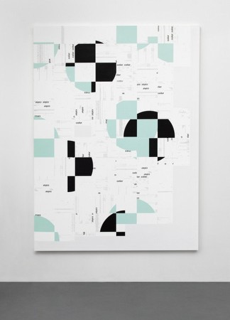 | Michael Riedel PowerPoint February 16 - March 23, 2013 David Zwirner is pleased to present an exhibition of new work by Michael Riedel, on view at the gallery’s 533 West 19th Street space. This will be the artist’s fourth solo show at the gallery. Since the late 1990s, Michael Riedel has advanced his own model of a self-sustaining artistic production, continuously using reproductions as a means to “reintroduce the system of art into the art system.” PowerPoint takes its point of departure in the artist’s last solo exhibition at David Zwirner entitled The quick brown fox jumps over the lazy dog (2011). Where this show reflected digital distribution processes—with Poster Paintings featuring information from websites communicating Riedel’s work as their backgrounds—the present exhibition takes the process a step further, allowing the system to recreate itself once more. It includes new works made by combining two Poster Paintings using an animated feature in PowerPoint, the software program used by the artist when delivering presentations on his work. Riedel has “frozen” the particular transition between two slides, generating a new work that takes place between two existing works. In a further variation of the idea, some Poster Paintings were merged with a blank page. The fact that each new work creates a gap that can be filled again suggests the idea of endless production. The two exhibitions thus contain distinct translations of the same visual source material. Where the Poster Paintings in the earlier show were hung against wallpaper printed with text from David Zwirner’s website, the PowerPoint Paintings are displayed against wallpaper featuring patterns from individual Poster Paintings. Twenty individual show cards each presenting different PowerPoint effects will also be on view. In mailings announcing the opening, a CD was included featuring a song by Woog Riots created for the exhibition, with lyrics taken verbatim from the text on the show card. Michael Riedel was born in 1972 and currently lives and works in Frankfurt, where he received a Meisterschüler degree at the Städelschule in 2000. The same year, he launched the experimental artist space Oskar-von-Miller Strasse 16 in Frankfurt, where he restaged cultural events held at other locations throughout the city. In 2004, communal dinners were introduced at the venue, which, following a temporary relocation to Berlin, now exists in its third iteration at a new address in Frankfurt. The communal dinners continue under the name Freitagsküche. Over the past decade, Riedel has shown in both solo and group exhibitions at prominent venues throughout the United States and Europe. In 2012, his work was the subject of a major survey, Kunste zur Text, at the Schirn Kunsthalle in Frankfurt. Other recent solo exhibitions include the Kunstverein Hamburg (2010); Städel Museum, Frankfurt (2009); and the Kunstraum Innsbruck, Austria (2007). He has participated in a number of international group exhibitions including the Sprengel Museum Hannover (2012); Kunsthaus Bregenz, Austria (2011); Galleria Civica d’Arte Moderna e Contemporanea (GAM), Turin (2010); Tate Modern, London (2009); Kunsthalle Bern (2008 and 2006); Lyon Biennale of Contemporary Art, France (2007); Moscow Biennale of Contemporary Art (2005); and the Secession, Vienna (2003). | ||||