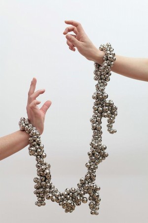| Haegue Yang Ovals and Circles March 15th - April 27th, 2013 The Chantal Crousel Gallery in Paris is pleased to announce Haegue Yang’s second personal exhibition, just months after the Ajar show at La Douane in 2012. With Ovals and Circles, Haegue Yang presents a new body of works introducing different forms of language and materials that seem distant from her well-known works composed of venetian blinds. Nevertheless, her interest in movement continues throughout these two exhibitions and emerges as a leitmotif in her current interest. In the central space of the gallery stand two sculptures, Sonic Brass Dance and Sonic Nickel Dance (2013), which appear to be a further development of her Dress Vehicles.Here, the notion of mobility and bodily experiences is of central interest. The slightest vibration triggers the bells tinkle, linking movement and sensorial experience. Sonic Rotating Ovals (2013) are rotating wall-mounted sculptures with clusters of bells on oval shape. Besides requiring viewers to spin them, they also reflect the visitors physicality in the glint off their metal, effect repeated ad infinitum by the myriad of bells. When the Sonic Rotating Ovals begin to spin, the bells vibrate and the oval form of the pieces tend to visually transform into a circle, a moment close to the "perfect harmony". However, the viewer's reflection in the bells does not follow the rotating and mesmerizing movement, staying in place, trapped between the multiplying visual as well as sonic effects. Rotating Notes – Dispersed Episode II, IV, V (2013), are rotating wall-mounted sculptures with quotes and notes, snippets of the artist’s recent research on epic dimension of post colonial diaspora around authors such as Suh Kyungsik and Primo Levi1. The quotations appear as tables of ideas stuck to a temporary setting. Then, this bulletin-board like free association of elements becomes impossible to read once a viewer sets the piece in motion. Haegue Yang literally hauls viewers into her concept of “unlearning”, disconnecting from acquired knowledge for more fluid self-expression of presented historical narratives. In Ovals and Circles, 27,12 m2 and 56,27 m3 installations (2000/2013), articulates and penetrates the surface and the volume of the space. Wall and space are chopped up every ten centimeters or so by straight chalky lines and cotton thread that prevent viewers from approaching the wall. The threads act as a permeable and transparent barrier, a fragile frontier rendering the space into a blacked triangular volume. Facilitating Pentagon Seating (2013) is made up of nine low modular tables in pentagonal arrangement and topped with simple but various interior items. The artist has placed a bunch of driftwood right in the middle. The very presence of the driftwood questions the function and purpose of the objects. Field of Teleportation (2011) is the artist’s first wallpaper, in collaboration with Manuel Raeder, a Berlin-based designer. In this supernatural and taoistic microcosm, Yang reproduces views of her exhibitions, of various pieces as well as key objects in her work, removed from their original context. Objects in this memory vortex seem to float and drift, as if immune to gravity. Selection of recent exhibitions: Haus der Kunst, Munich (2012), dOCUMENTA (13), Kassel (installation at Central Station and Malady of death - Monodrama with Jeanne Balibar at Staatstheater, 2012), Modern Art Oxford (2011), Kunsthaus Bregenz (2011), New Museum, New York (2010), Artsonje Center, Seoul (2010), Korean Pavilion, 53rd Venice Biennale (2009) Upcoming solo exhibitions: Aubette 1928 et MAMCS, Strasbourg (June 2013), Bergen Kunsthall (October 2013), Glasgow Sculpture Studios (October 2013) 1. Based on the research for Accommodating the Epic Dispersion – On Non-cathartic Volume of Dispersion on view until September 22, 2013 at the Haus der Kunst, Munich. Works include the quotations of the following authors: Primo Levi, Kyungsit Suh, Edward Said, George Orwell, Ghassan Kanafani, Isang Yun, Jean Genet | ||||