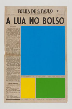 | Marine Hugonnier - Common Consciousness 30 June 2011 to 13 Aug 2011 Galeria Fortes Vilaça is pleased to present the exhibition Common Consciousness, by French artist Marine Hugonnier. In her first solo show in Brazil, the artist is showing collages on vintage newspapers, lending continuity to her renowned series Art for Modern Architecture. This series began with collages made with cutouts from the book Line, Form, Color (1951) by Ellsworth Kelly, applied on the front pages of vintage newspapers. The American artist defended the argument that art should be made for public spaces emphasizing the modernist utilitarian project of art at the service of modern architecture. In Art for Modern Architecture, Hugonnier prolongates Kelly’s ideas, introducing them to a new medium, the printed newspaper. In 2009, Hugonnier began to use silkscreened paper using the colors of the Kodak chart: cyan, violet, magenta, red, black, yellow and green. These colors are the standard ones used in photomechanical reproduction. The artist thus formalizes a potential image, recalling the viewer’s memory or a collective consciousness. The show at Fortes Vilaça presents collages made on Brazilian newspapers from different eras, beginning with the construction of Brasília in 1960. In setting up the show, Hugonnier chose to temporalize the space by changing the collages displayed on the walls: each week the artist will present a group of collages from a specific decade, from the 1960s until today, thus creating six different setups during the six weeks of the exhibition. The events featured were not chosen by the artist; rather, they are what the artist was able to find through Internet searches and adds she placed in newspapers, looking for people willing to sell old newspapers. By discovering what the Brazilians felt was relevant to keep, the artist also sought to reveal a collective consciousness. Beyond the beauty of the printed page and the precise geometric compositions, the essence of these works lies in the anachronism established between the present time of the viewer and the collages and the past time of the documents. By covering the images on the newspapers and breaking their day-to-day narrative structure, Hugonnier investigates the reality of the spectator’s memory, whether it is a cultural ground or an imaginary landscape. Other artworks in the Art for Modern Architecture series have previously been shown at important venues worldwide including the 52nd Venice Biennale, Italy; MOMA/New York, USA; Kunsthaus Graz, Austria; and MACBA, Barcelona, Spain. Hugonnier has recently presented solo shows at FRAC Champagne-Ardenne, Reims, France; Malmö Konsthall, Sweden, Kunstverein Braunschweig, Germany; Musée D’Art Moderne et Contemporain MAMCO, Geneva, Switzerland; S.M.A.K. Stedelijk Museum voor Actuele Kunst, Gent, Belgium; Philadelphia Museum of Art, Philadelphia, USA; Fondazione Sandretto Re Rebaudengo, Torino, Italy; and Kunsthalle Bern, Switzerland. | ||||