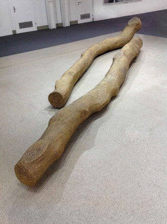 Hubert Duprat, Coup�-Clou�,1991/1994 bois de h�tre et clous tapissiers en laiton (beech wood and upholstery brass nails) 70 x 520 x 40 cm & 40 x 520 x 40 cm (271/2 x 2043/4 x 153/4 & 15 3/4 x 2043/4 x 153/4 in | |||