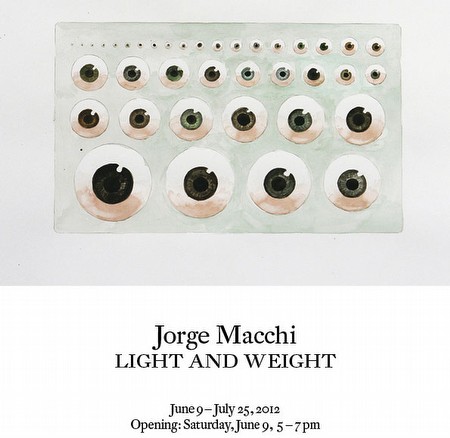 | JORGE MACCHI Light and Weight June 10 to July 28, 2012 Opening: June 9, 6 – 8 pm Galerie Peter Kilchmann is pleased to present new works by Argentinean artist Jorge Macchi. The artist was born in Buenos Aires in 1963 and continues to live and work there. “Light and Weight” is the third single exhibition of Jorge Macchi at Galerie Peter Kilchmann. The title “Light and Weight” can be understood in two ways, with “Light” referring both to the visual sensation and the definition of weight – lightness as opposed to heaviness. The double literal sense of the term takes us straight to the center of Jorge Macchi ʼ s work. His objects, drawings and installations can always be viewed and read is different ways. In the exhibition this becomes apparent from the start, as one enters the gallery space and encounters a series of small and medium-sized works on paper. In his drawings and watercolor paintings, Jorge Macchi uses the fluidity of the medium to capture images as he envisions them. Macchi ʼ s drawings are above all simple and without context. The images float on the white space of the paper. The fluidity of the medium stands in stark contrast to the geometric motif of the circle template, which appears in several works and is shown in various conditions: Eyes are added; the circle template is blurred, merged, or burned (See invitation card: Peep, 2011, watercolor and pencil on paper, 29,5 x 42 cm; Spillage , 2011, watercolor on paper, 30 x 40 cm). To the side of these works a tangible template is shown – a handkerchief showing circle holes in various sizes and embroidered with numbers. Titled Air the object playfully alludes to the volatility of the air passing through the perforations in the fabric, rendering the drawing aid useless (2012, fabric and cotton thread, Ed. of 6, 16 x 27 cm). The new sculpture Illumination captures oneʼ s attention immediately upon entering the second space. Seemingly effortless a pointy star balances itself on the ground, and only a second look reveals the weight of the material: Cement. It takes a third glance to recognize the true nature of the object: This is no star, but rather a bundle of light beams that belong to seven flashlights (2012, 7 flashlights and cement, 285 x 285 x 285 cm). That an artwork seems to change before our eyes is an inherent quality of Jorge Macchi ʼ s work. This is also true of the video installation XYZ , 2012. Projected directly into a corner, the 1-channel projection shows a Swiss railway station clock, with its ʼ clock hands aligning themselves with the space coordinates. Whoever has seen Jorge Macchi ʼs artwork 10:51 knows that according to the artist it is quite possible for time and space to interfere with each other. If the other works are a matter of light, then Projection , 2012, addresses the issue of weight. The room specific installation occupies the entire third room and is made up of a partition wall (250 x 340 cm), which is tilted backwards and held in place only by a series of thin steel cables coming out of one point high up on the opposite wall. Another artwork of Jorge Macchi will be shown in the public space in Zurich as part of the exhibition project “Art and the City”. Further exhibition participations of Jorge Macchi in 2012 include the Biennial of Sydney, Australia, and the Biennial of Liverpool, England. In 2011 the large single exhibition “Music Stands Still” was shown at Stedelijk Museum voor Actuelle Kunst in Ghent. The exhibition catalog can be obtained through the gallery. LOS CARPINTEROS Galerie Peter Kilchmann is pleased to start its liaison with Los Carpinteros with a presentation of new works in the rear project space. The collective Los Carpinteros is made up of Cuban artists Marco Antonio Castillo Valdés and Dagoberto Rodríguez Sánchez, who live and work in Havana and Madrid. A large single exhibition of Los Carpinteros at the gallery will follow in the summer of 2013. The presentation of the largeformat works on paper, such as M.A.E.S. Bulgaria – Lego , 2012 (See invitation card: Watercolor on paper, 113 x 199 cm) coincides with the artists ʼ participation in “Art and the City”. As part of the citywide exhibition in public space, Los Carpinteros will be showing large brick tower sculptures on the nearby Escher-Wyss-Platz. The single exhibition “Silence your eyes” is on view at the Kunstmuseum Thun, Switzerland, until July and will travel on to Kunstverein Hannover, Germany in December 2012. A catalog will be published on the occasion, and is available through the gallery along with further publications. Further press material and images can be obtained through the gallery. The artists will be present for the opening. JORGE MACCHI Light and Weight 10. Juni bis 28. Juli, 2012 Eröffnung: 9. Juni, 18 – 20h Galerie Peter Kilchmann freut sich, neue Werke des argentinischen Künstlers Jorge Macchi zu präsentieren. Jorge Macchi wurde 1963 in Buenos Aires geboren, wo er heute lebt und arbeitet. „Light and Weight“ ist die dritte Einzelausstellung des Künstlers in der Galerie Peter Kilchmann. Die Präsentation von Jorge Macchi steht unter den Begriffen „Light“ und „Weight“, – wobei das englische Wort „Light“ sowohl Licht als auch Leichtigkeit bedeutet. Der doppelte Wortsinn zielt bereits ins Herz von Jorge Macchis Werk. Seine Objekte, Zeichnungen und Installationen können immer auf verschiedene Arten betrachtet und gelesen werden. In der Ausstellung zeigt sich dies im ersten Raum anhand einer Serie von Arbeiten auf Papier. In seinen Zeichnungen und Aquarellen hält Jorge Macchi die Bilder so fest, wie sie in seiner Vorstellung auftauchen. Macchis Zeichnungen sind simpel, sie stehen in keinem Kontext. Die Fluidität des Mediums steht dabei in Kontrast zum geometrischen Motiv der Kreisschablone, welches in mehreren Werken auftaucht und verschiedene Zustände annimmt: Augen werden hinzugefügt, die Kreisschablone verwischt, vermengt, verbr