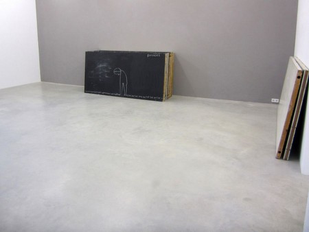 | DAN PERJOVSCHI BOARD, WIRE, AND MAIL DRAWING September 10 - November 12, 2011 Galerija Gregor Podnar is pleased to announce the opening of Board, Wire, and Mail Drawing, a solo exhibition by Dan Perjovschi. Dan Perjovschi's work has developed into a prolific drawing practice, focusing in particular on satirical drawing. Seeking more to communicate something about the world rather than simply to aestheticize it, Perjovschi’s thoughts develop in response to current events that affect the artist’s immediate environment, such as the cultural identity, politics, religion, the role of the individual in the collective, and the relationship of the global and the local. The artist will show recent drawings in various media. The idea show is based on the idea of unit and quantity, and especially on interchangeability. The artist uses these media (drawing-performance, mail art, sculpture drawing, etc) as a fluid and variable adaptation of his usual drawing's practices, on paper or on the wall. One series of works consists of chalk drawings on large-scale blackboard panels, originally made for the exhibition Chalk Reality in 2010 at the Museum of Contemporary Art in Novi Sad, Serbia. This series is composed of 13 blackboard "lessons", entitled The Other, Ecology, Politics, Beliefs, etc. The second group of work, God and Goods is a series of 80 drawn postcards made in 2008 for an exhibition at Villa Manin, Italy, based on the reflection about religion in time of consumerism. During the exhibition duration, the art space received constantly postcards which were mapping the artist's world-wild travels, and were changing the exhibition's display. Wire Drawing (Sibiu), the third one, is a piece made out of wire, which depicts an endless field of small figures, juxtaposing the individual with crowds of people. The work refers to closed societies, as dictatorships. The artist tries to find the individual inside the masse, which is represented with a strong but malleable material. Wire Drawing (Sibiu) is a 3-dimensional version of a series of drawings Urzeala (Romanian word describing a knitted texture) from 1986-1988. Chalk Reality and God and Goods are presented as pile, where only the part on top is visible. Throughout the 8 weeks of the exhibition, the works on display will be regularly switched . PS: the fourth group of works is a pile of Drawings on Linoleum, which have been made at Dan Perjovschi's exhibition "Stuff" in 2008 in the gallery. Dan Perjovschi lives and works in Bucharest, Romania. In the recent past years, he has had solo exhibitions amongst other at the Tate Modern, London (2005), MoMA, New York, (2006), Wiels, Brussels, (2008), Van Abbe Museum, Eindhoven, (2008), Castello di Rivoli, Turin (2009), Kunstverein Salzburg (2009), San Franscico Art Institute (2010) and MACRO, Rome (2011). | ||||