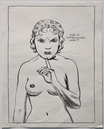 Raymond PETTIBON, Untitled (Who is hypnotizing who?), 1985 black ink on paper, 30,4 x 25,6 cm Courtesy Georg Kargl Fine Arts, Vienna | |||