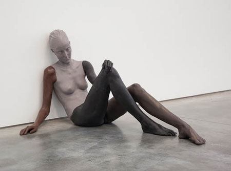 | Ugo Rondinone "nude" 530 West 21st Street, New York, NY 10011 November 6 - December 23, 2010 Opens Saturday November 6, 6-8pm Gladstone Gallery is pleased to announce an exhibition of new works by Swiss artist Ugo Rondinone. Continuing to offer a glimpse into his widely discursive practice through meditations on the experiential qualities of the everyday, Rondinone draws upon a multiplicity of artistic tropes and approaches to create immersive and affectively charged environments. Skillfully traversing the boundaries between public and private, interior and exterior, truth and falsity, Rondinone reveals and displaces the processes of how cultural meaning is produced and distributed. Spanning a wide range of material production, from video to neon signage, this exhibition focuses on new figurative sculptures, which like the whole of Rondinone's work consistently testifies to the strangeness and beauty of human life. Since the early 1990�s Rondinone has been developing a specific formal and conceptual language around figuration that includes an expansive group of sculptural and photographic self-portraits as well as his clown series. Established as a thematic extension of these earlier works, this exhibition continues to explore similar aesthetic strategies of engagement in which Rondinone generates often unsettling contexts that reflect upon existentialist expressions of the human condition. Made from a mixture of wax and earth pigments, these seven human-scale figures modestly line the walls of the gallery space, each positioned in a pose of hermetic contemplation that gives way to a site of serenity. While the exhibition title "nude" most commonly connotes bare or naked, it also implies a kind of primary, exposed and reductive state, which Rondinone mirrors by stripping the scene of narrative action, a decision that momentarily suspends the outside world and its referential character in an appeal to the conditions of our present state of consciousness. Accentuating the vast dimensions of the room and its abyss-like emptiness, Rondinone's interplay of sculpture and architecture elicits a sensorial encounter, highlighting both the passivity of the figures and the spatial void at the core of this scenario. By staging this setting for existential reflection, Rondinone plays with the co-constitutive forces of artifice and authenticity, unfixing the grounds upon which they operate and allowing the imminent ruminations upon Being to briefly and reflexively take hold among his poetic reshuffling of truth and meaning. Born in 1964 in Brunnen, Switzerland, Rondinone�s work has most recently been the subject of solo exhibitions at Kunsthaus Aargauer, Switzerland and Museo de Arte Contempor�neo de Castilla y Le�n, Spain. In 2007 he represented Switzerland in the 52nd Venice Biennial as well as curated �The Third Mind� at Palais de Tokyo in Paris. He currently lives and works in New York. Rondinone�s five tree sculptures will concurrently be on view at the IBM Building at 590 Madison Avenue in New York. For further information please contact Sascha Crasnow +1 212 206 9300 or [email protected] Gallery Hours: Tuesday - Saturday, 10am-6pm 515 West 24th Street Wangechi Mutu �Hunt Bury Flee� October 30 through December 4 530 West 21st Street Marisa Merz �Living Sculpture� October 7 through November 20 12 Rue du Grand Cerf, Brussels Sarah Lucas �Penetralia� November 18 through December 23 Gallery Hours: Tuesday � Friday, 10am-6pm, Sat 12pm-6pm | ||||