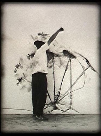 � Robin Rhode, Untitled, Microphone, 2005. Super 8 mm film transferred to video, Duration: 10 min, 44 sec. Image courtesy Robin Rhode, Perry Rubenstein Gallery, New York and Tucci Russo Studio per l'Arte Contemporanea, Torre Pellice