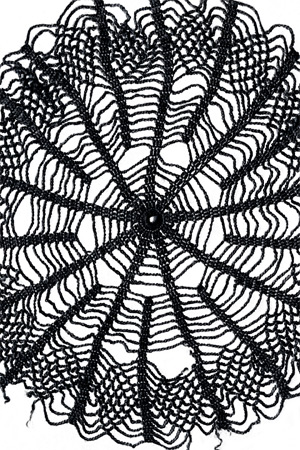 The artworks presented in Gallery Krobath can be categorised into two groups: One comprises large circular pieces of crocheted works which can be spread on the floor or mounted on the wall. The pieces are primarily made of black thread and have flaws and frayed fringes, resembling cobwebs and thus evoking a feeling of menace and distracting from the beauty of the traditional handicrafts. These works could also be viewed as an allusion to military clich�s, as they are reminiscent of reticles and targets. The soft material of the works, consisting of wool and thread, adds an ironic twist to this interpretation.