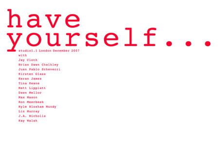 | Studio 1.1: 'HAVE YOURSELF... - 7 Dec 2007 to 23 Dec 2007 Current Exhibition | ||||