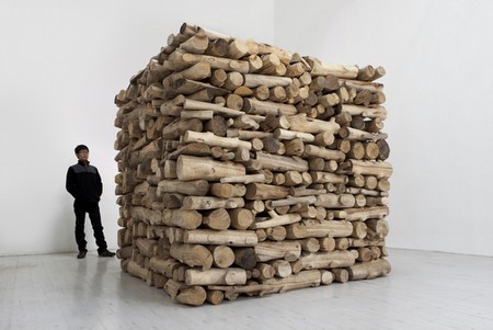 Hu Qingyan, "Firewood" 2012 camphorwood 200 x 200 x 200 cm (8 m� stere) | |||