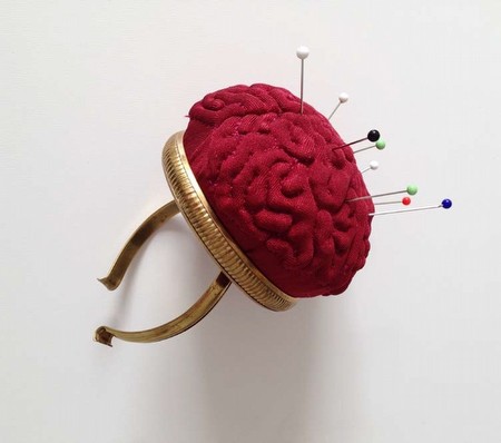 Elodie ANTOINE, Pin holder bracelet, 2014 lycra, golden metal, pins and padding, unique | |||