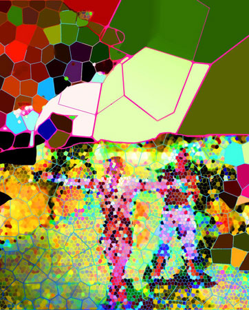 Daniele Buetti, Oh Boy! Oh Boy! #1, 2010 color print on dibond under laser cut acryl glas mosaics | |||