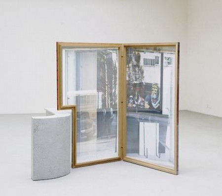 | SABINE HORNIG Still Life at Window Parallel to her comprehensive exhibition, Durchs Fenster /Through the Window, at the Pinakothek der Moderne and the Alte Pinakothek, we are pleased to feature the second solo show by Sabine Hornig, from December 2 through February 18, 2012. The Berlin artist dissolves the boundaries separating photography, sculpture, and installation, allowing the everyday and the coincidental to interplay in her visual and spatial analogies. Her first show at the gallery in 2005 featured a large slide of a curtained shop window, set into a wall separating two rooms of the gallery. Initially perceived as a mural, the transparency and change of perspective became apparent to viewers upon closer inspection. Hornig has been exploring this layering of abstract visual space and real space since 2001. Her process results in a multi-level visual construct consisting of transparency and reflection, uniting several views of a spatial situation on a two-dimensional level. With a background in sculpture, architectural and sculptural aspects are important to the artist. By construing the window pictures as objects and integrating them as photographic elements into her sculptures, Hornig creates hybrid forms that can be regarded as photo-sculptures. She emulates architectural details in sculpture and combines them with photographs to create new kinds of objects, leading to a new perspective of the interplay between objects and their materiality. Another example is the sculpture Stilleben am Fenster / Still Life at Window, 2010: a semi-circular balcony wall is joined to two wooden window frames set at right angles to each other, which can be interpreted as picture frames. They are covered with transparent fabric printed with photographs of shop windows seen from the outside. Hornig creates a new space within the exhibition space, whose transparency simulates openness, yet the viewer is denied entry to it. The situation is similar in the small sculpture Hütte III / Hut III, 2009: a house of cards made of steel. This fragile looking architectural structure canopies a transparent photograph of the same sort of elementary shelter in an urban space, in model-size proportions. The abstract, hut-like, steel structure forms the framework for a direct reference to its real origins. In addition, this is also the first showing of Hornig?s series of photographs on paper of façades, shop windows, and interiors. These studies might also be models for sculptures and photographic works, but their almost print-like quality allows them to stand on their own. Sabine Hornig (born in 1964 in Pforzheim) lives and works in Berlin. In 1987 she began studying visual arts and sculpture under David Evison and Isa Genzken at the HdK Berlin (now the Berlin University of the Arts). She received the Karl Schmidt-Rottluff grant in 1998, and the PS1 grant in New York in 1999/2000; in 2009 she was the recipient of the Goethe Institutes Villa Aurora grant in Los Angeles. Solo shows (selected): Kunst-Werke, Berlin, 1993; MOMA, New York, 2003; Centro Cultural de Belém, Lisbon 2005; Berlinische Galerie, Berlin, 2006; Pinakothek der Moderne and Alte Pinakothek, Munich, 2011/12. Stilleben am Fenster Parallel zu ihrer werkübergreifenden Ausstellung Durchs Fenster in der Pinakothek der Moderne und der Alten Pinakothek freuen wir uns, vom 2. Dezember bis Februar 2012 die zweite Einzelausstellung von Sabine Hornig zu zeigen. Die Berliner Künstlerin löst die Grenzen zwischen Fotografie, Skulptur und Installation auf. Sie benutzt das Alltägliche und Zufällige in einem Wechselspiel von Bild- und Raumanalogien. In ihrer ersten Ausstellung in der Galerie im Jahr 2005 zeigte sie ein Großdia eines verhangenen Schaufensters, das zwischen zwei Räumen in eine Wand der Galerie eingelassen war. Zunächst als Wandbild wahrgenommen, wurde dem Betrachter erst auf den zweiten Blick Transparenz und Perspektivwechsel deutlich. Diese Überlagerung von abstraktem Bildraum und tatsächlichem Raum untersucht Sabine Hornig seit 2001. Dabei entsteht ein vielschichtiges visuelles Gefüge von Durchsicht und Spiegelung, mehrere Ansichten einer Raumsituation sind auf einer zweidimensionalen Ebene vereint. Aus der Bildhauerei kommend, spielen für die Künstlerin architektonische wie skulpturale Aspekte eine Rolle. Indem Sabine Hornig die Fensterbilder als Objekte auffasst und als fotografisches Element in ihre Skulpturen integriert, entstehen Hybridformen, die sich wie Fotoskulpturen lesen. Sie bildet architektonische Details plastisch nach und kombiniert sie mit Fotoarbeiten zu neuen Objekten. Das Zusammenspiel der Gegenstände und ihrer Materialität wird hier in eine neue Perspektive gerückt. Ein weiteres Beispiel ist die Skulptur Stilleben am Fenster, 2010: eine halbrunde Balkonbrüstung fügt sich in eine rechtwinklige Installation zweier hölzerner Fensterrahmen, die sich als Bildrahmen lesen lassen. Diese sind mit transparentem Stoff bezogen, auf die Außenansichten von Schaufensterscheiben gedruckt sind. Sabine Hornig erzeugt einen neuen Raum im Ausstellungsraum, der durch seine Transparenz Offenheit vorgibt, dem Betrachter jedoch jeglichen Zutritt verwehrt. Ähnlich verhält es sich mit der kleinen Skulptur Hütte III, 2009: ein Kartenhaus aus Stahl. Die fragil wirkende architektonische Struktur überdacht eine transparente Fotografie, die eine ebensolche elementare Behausung im urbanen Raum in modellhaftem Maßstab zeigt. Die abstrahierte, hüttenähnliche Stahlkonstruktion bildet den Rahmen für den direkten Verweis auf ihren realen Ursprung. Darüber hinaus zeigt Sabine Hornig zum ersten Mal eine Reihe von Fotografien auf Papier, auf denen Fassaden, Schaufenster und Innenräume nebeneinander zu sehen sind. Diese Studien können Vorlagen für Skulpturen und Fotoarbeiten sein, stehen in ihrer fast grafischen Qualität jedoch ebenso für sich. Sabine Hornig (geb. 1964 in Pforzheim) lebt und arbeitet in Berlin. Sie studierte ab 1987 
