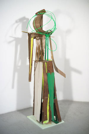 | David Castillo Gallery is proud to present Pepe Mar's solo exhibition Raw Sewage, the artist's second solo exhibition with the gallery. Mar employs collage, assemblage, and papier mache techniques to manipulate all manner of humble, found materials, such as plywood. By responding to natural materials or materials found "naturally," the artist addresses head-on recycling. As Mar continues to criticize the formalities of sculpture, he takes very disparate forms and arranges these with great clarity. By researching the life and potential of his materials, the artist achieves a sensation of the maniacal, somber, decadent, resistant, and delicate rebirth of the refuse of the everyday. Color and form come together along with techno music obsessions to create this new body of work of tribal-mechanical beings. Mar incorporates an entirely new set of materials, exploiting their breakdown with exceptional sensitivity. The artist's consumer culture critique is seen in the works in the exhibition. All of the sculptures incorporate elements from a demolished home and business in the vicinity of the artist's studio at the Deering Estate at Cutler. His works have always served as a reminder of all that society leaves behind. That a former home and business would be considered detritus by a society is in itself a powerful statement. While having always dealt with recycling as a matter of necessity, the scale of recycling becomes massive in the current work. Soft and circular lines are intercepted by jagged pieces of wood paneling, as ever a reminder that his work can be both camp and violent at the same time. Previous bodies of work were often described as monstrous yet somehow human. The current sculptures take the theme of human subversion further. Now Mar's sculptures have pushed out the human identity, much in the same way that human identity is pushed out in our affluent fetishistic society. The works are informed as much by fashion in their sensitive approach to color as by scavenging to find rigorous and sturdy materials. Pepe Mar was born in Mexico and he lives and works in Miami, Florida. He received his BFA from California College of Arts (CCA), San Francisco in 2001. His work has been exhibited throughout the United States, as well as venues abroad, and is included in major collections in the U.S., Europe, and Latin America. Mar's artwork has appeared in the New York Times, Artnews, Art in America, Art + Auction, ArtNexus, the Artnewspaper, and Artnet. The artist is currently part of the Deering Estate at Cutler Artist Residency, Miami and also participated in the Cooper Union Artist Residency, New York in 2007. He will be included in three exhibitions this Fall- a solo site-specific exhibition at White Flag Projects, St. Louis' premiere alternative art venue; a permanent collection exhibition at Miami Art Museum; and More Please!: Excess and Indulgence in Contemporary Culture at the Museum of Contemporary Art, Jacksonville. The opening reception is generously sponsored by Coastal Wine & Sprits. About David Castillo David Castillo has been a private art consultant and art dealer for over a decade. His professional background began with the Yale University Art Gallery, and later museums and galleries in Miami & elsewhere. His studies and degrees are in History & Art History from Yale University & the Vatican. Gallery Hours: Tues-Sat. 12 noon- 5pm, and by appointment | ||||