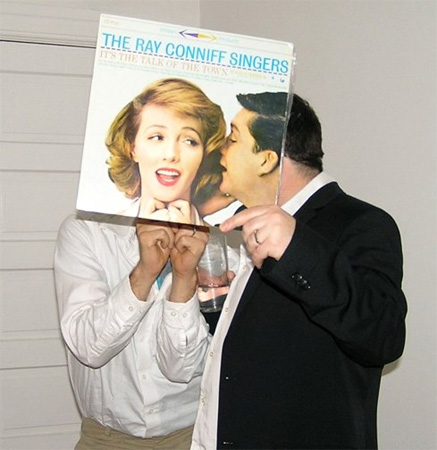 | Sleeveface The official website of Sleeveface, www.sleeveface.com, defines the art of Sleevefacing as "one or more persons obscuring or augmenting any part of their body or bodies with record sleeve(s) causing an illusion". In layman's terms, this means that you, the Sleevefacer, goes to his or her record collection and weeds out any records with sleeves featuring faces or body parts. You then hold that sleeve up in front of the relevant face or body part and bingo, your body has Kylie's face or, in one particularly amusing case, your dog has Barbra Streisand's face. The art of Sleevefacing was invented in Cardiff by a couple of DJs bored between songs. Since it's birth, they've seen their art travel to the furthest reaches of the Earth and all the way onto This Morning with Eamonn Holmes and culture 'expert', Paul Ross. This exhibition collates some of the best Sleevefaces supersized for your amusement. Dal clawr record lan o flaen eich corff a cymryd llun ydi'r disgrifiad syml o Sleeveace. Mae'r llunie sydd wedi troi lan ar sleeveface.com yn anhygoel; mae'r syniad wedi gweld twf enfawr mewn creadigrwydd o ddefnyddio feinyl ac mae'r arddangosfa yma, y cyntaf erioed, mynd i fod yn wych. | ||||