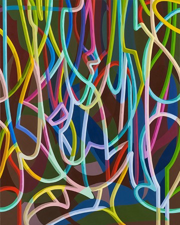 | YVES OPPENHEIM Paris: 57, rue du Temple 11 June – 25 July 2015 Opening: 11 June 2015, 6–8pm Galerie Max Hetzler, Paris is pleased to present an exhibition of recent paintings and drawings by Yves Oppenheim. Unpredictable, Yves Oppenheim often plays with the effects of repetition and variations of a formal abstract language, creating intricate pictorial spaces and elaborate chromatic harmonies. In his large scaled computer-generated canvases, coloured shapes, clearly outlined, as if cut out, layer and intertwine on the surface. The alternation between transparent and opaque textures leads to expressive optical illusions with infinite possibilities, encouraging the viewer to take a deeper look at the artwork as well as to spend more time with it. “My work primarily concerns the action of colour on mind and conscientiousness. There is a logic of coloured sensation. It starts from a point on the picture, a point to which one holds fast; thence one follows the pathway of the colour, which meets other colours, passing above or below them (or through shadow), and being gradually transformed. (…) Very often black and white are present by way of reference. The picture is composed of several dozen of different colours that attain life and autonomy. (…) In every case, the light comes from the depths. There is a layering of coloured surfaces that creates the structure, which is an immense space. It is like walking in a jungle: you have to part the branches and lianas to see the light behind them. By creating space, the eye circulates in colour.” (Yves Oppenheim, in Remember Everything, 2013) Yves Oppenheim’s works evoke Matisse’s collages as well as American painting from the 1950s and 1960s (Frank Stella, Mark Rothko, Barnett Newman...). Eschewing art as a process, Oppenheim cultivates a sensitive and liberated approach, a poetic quest, attempting to distance himself from gesture and material, both having been favoured for so long. Alongside his paintings, which he executes at a slow pace, Yves Oppenheim pursues a more spontaneous approach in his works on paper. The ink drawing series on view provides a counterpoint to the canvases. Gestures free themselves, whereas forms become more organic and evocative, some figurative components even crystalizing in the tangled lines. “These are drawings of sensations, materials, and forms and thus allow the work to be connected to a reality, to an instant of thought. Drawings are related to the pleasure of unconstrained freedom. I see them as objects of reverie and indefinite spaces.” states Oppenheim, “It is connected to deep memory. I like the way this works on several levels and seek to avoid creating works that reveal themselves at first glance. I layer sensation and other qualities such that the spectator can explore in depth like an archaeologist, reconstituting and appropriating the original thought.” (op. cit.) Yves Oppenheim, born 1948 in Tananarive, Madagascar, has been living and working in Berlin since the early 2000’s. His past exhibitions include Galeria Pedro Cera, Lisbon (2014, 2009 and 2005), Charim Galerie, Vienna (2014 and 2005), Galerie Max Hetzler, Berlin (2009 and 2005), Galerie Xippas, Geneva (2012), Athens (2010 and 2007), Paris (2006), and Galerie Xavier Hufkens, Brussels (2005). Paintings of his are part if the collection of public institutions such as the Musée d’Art Moderne de la Ville de Paris, the Centre Pompidou, Paris and the Carré d’Art Nîmes. | ||||