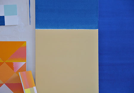 | Bodil Nielsen: THE SUN SHNES ON BLUE SKIES Danish artist Bodil Nielsen opens her solo exhibition THE SUN SHINES ON BLUE SKIES at Galleri Tom Christoffersen. The new paintings present deeply rooted ornamentation and scaling with bright colours. The particular use of colours and the various sizes and formats of the canvases activate the space of the viewer. Association relates the many paintings in a way, which is seldom seen in Bodil Nielsen�s previous production. The seriality is played down and the paintings are not organized in systematic pseudo categories. Instead they differ in scale, space, transparency, opacity, format, composition, colour scheme and technique � a multifaceted body of works that gathers as different strands of the same position in the careful installation by Bodil Nielsen. THE SUN SHINES ON BLUE SKIES enhances the possibilities to let the attention move along all possible relations between the works, which results in an ever changing overview. Bodil Nielsen works in the open field between the formal, the ornament, nature observation and the optical effects of colours. In the new paintings an underlying grid of interlocking polygons is scaled up and down from painting to painting as it fluctuates between being a visible drawn line and a hidden structure in the materiality of the paint. The grid can be put into play with the early modernism�s emancipative use of this non-hierarchical and never-ending structure but it is also relevant in play with the decorative intensity of the ornament, which is repeated in almost all visual cultures � an intensity, which in the paintings by Bodil Nielsen creates tensions between the plane and illusory space. The American art movement �Pattern & Decoration� is an important reference in the production of Bodil Nielsen. In the 1970ties �P&D;� looks towards pictures made by non-western cultures and towards the arts and crafts produced by American minority settlements. For example the patterns of systematic geometry referring to the landscape and repeated through generations in the continuous making of quilted and woven fabrics. Patterns that today functions as common point of reference reproduced over time rather than a momentarily statement from an individual voice. Bodil Nielsen�s abstract painting carries the same ideal of being deeply rooted: Partly in the common and collective, partly in the basic observations of nature, distances in the landscape, a seaview � sunshine and shadow. Cube: Hanne Nielsen & Birgit Jonsen Steen: Cameraderies (film, 2007-09) Bodil Nielsen studied at the Royal Danish Academy of Arts, Copenhagen (DK) and the Jan van Eyck Akademie, Maastricht (NL), Holland. She is currently participating in the exhibition �Sense and Sensibillity� med Malene Landgreen, Galerie M�llerWitt, Aarhus (2010). Selected previus ehibitions are: Sunchine & Shadow (Sollo), Galleri Rostrum, Malm� (S, 2010), Against the Wall, Kunsthal Charlottenborg, Cph. (2009/10), OVERGADEN (solo). Overgaden, Cph. (2003). Fact & Value. Kunsthal Charlottenborg, Cph.(2000). Bodil Nielsen has conducted several large-scale commissins and is represented in many public collections. | ||||