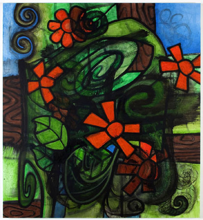 Carroll Dunham, Untitled, 2009 - 2010 Mixed media on linen, 47 1/2 x 51 1/2 inches (120.7 x 130.8 cm) framed, CD 113 Courtesy: Gerhardsen Gerner, Berlin. | |||