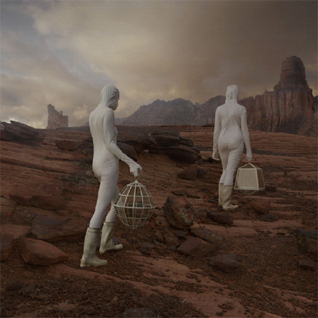 Poignant issues of technology, economic and societal collapse, environmental disaster and existential philosophy are explored under the guise of a fantastical journey through the deserts of our neighbor planet. Additionally, the notion of Earth and Mars as planetary twins is advanced through repeated visual mirroring devices: the figure of Janus � two-faced god of portals � appears, as do the motifs of dividing cells and the recurrence of hematite rock clusters that appear, almost identically, on the surface of Mars and the deserts of Utah, a location used by Kahn & Selesnick for this project.